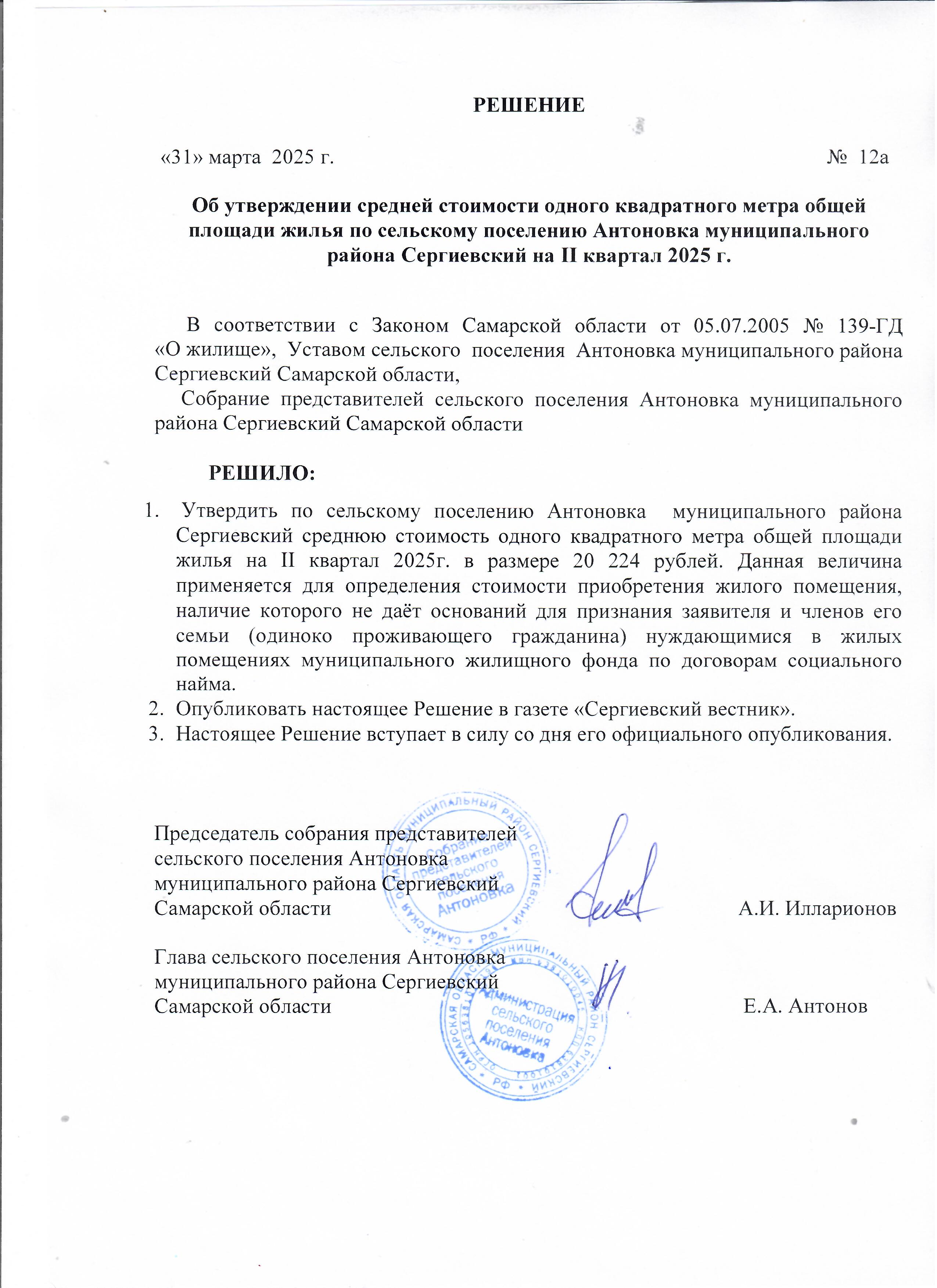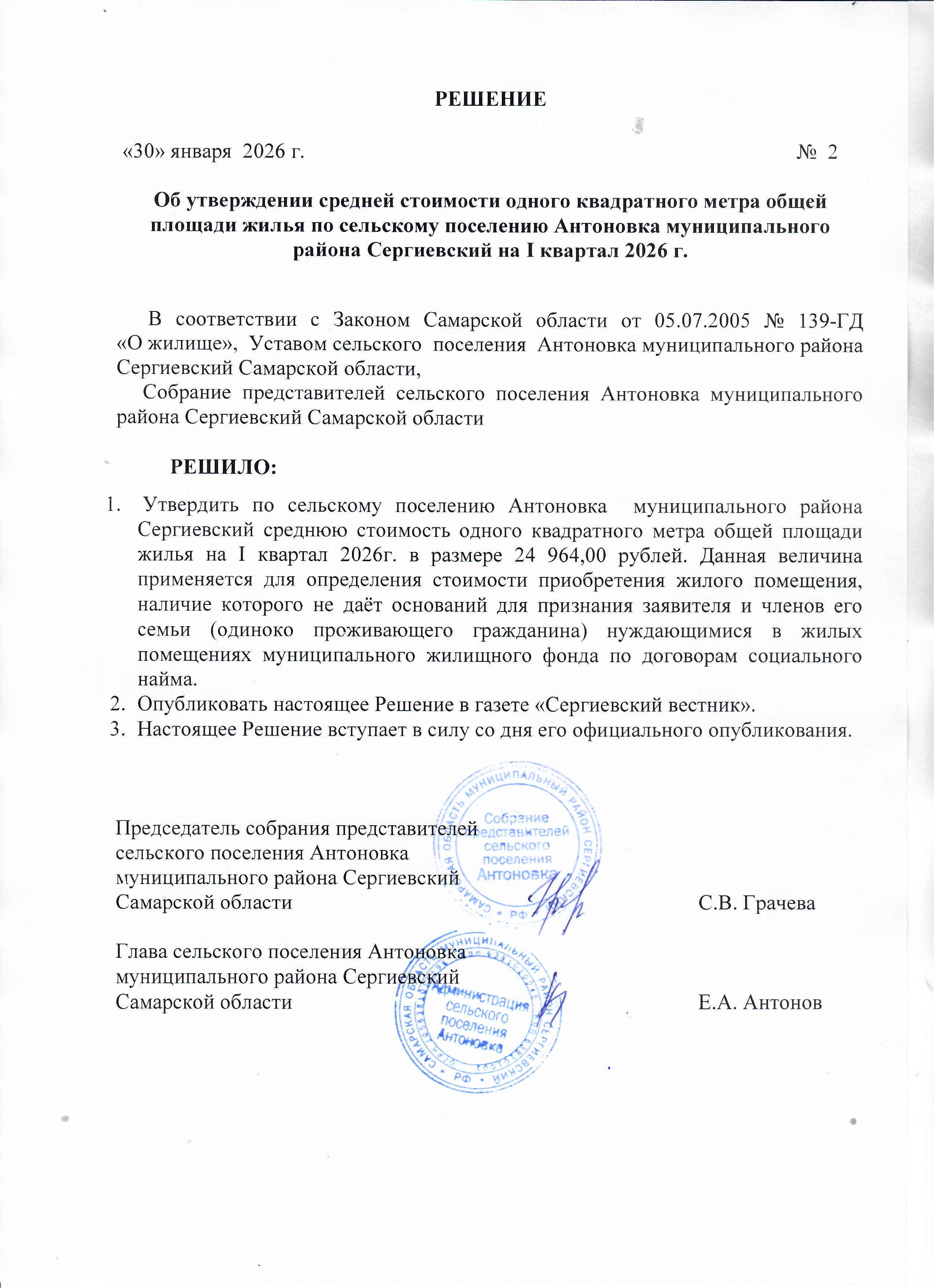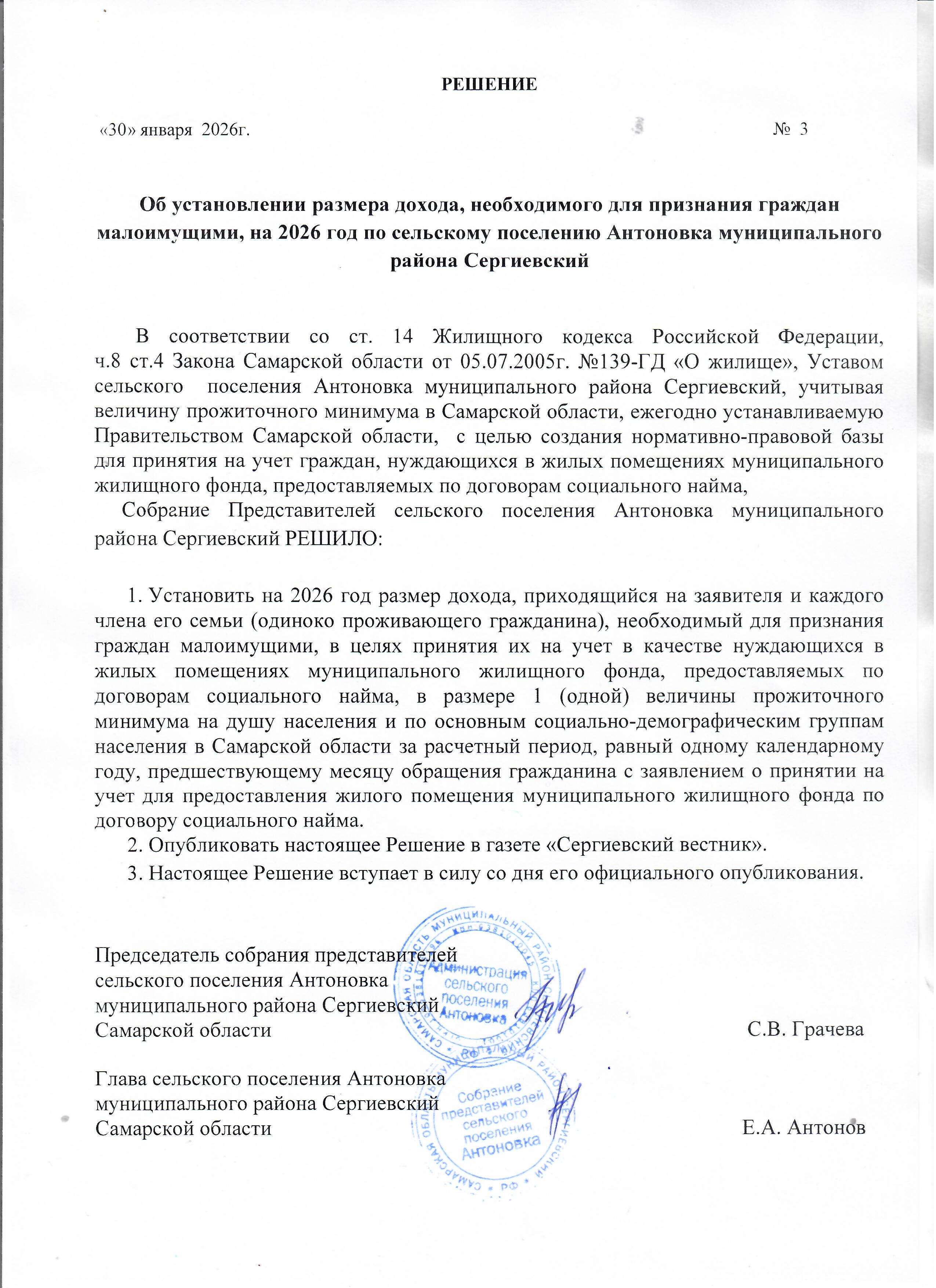 Решение №3 от 16.01.2025г. Об установлении размера дохода, необходимого для признания граждан малоимущими, на 2025 год по сельскому поселению Антоновка муниципального района Сергиевский